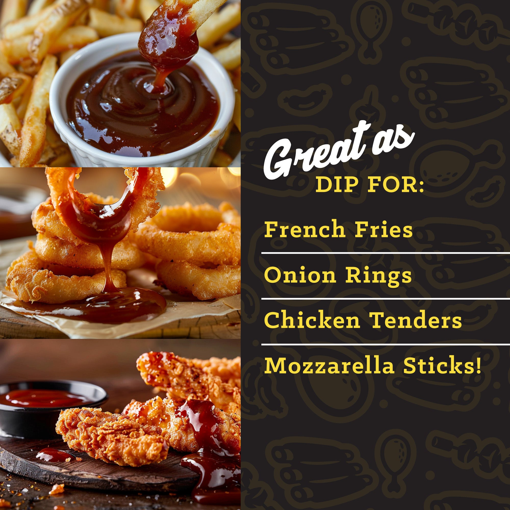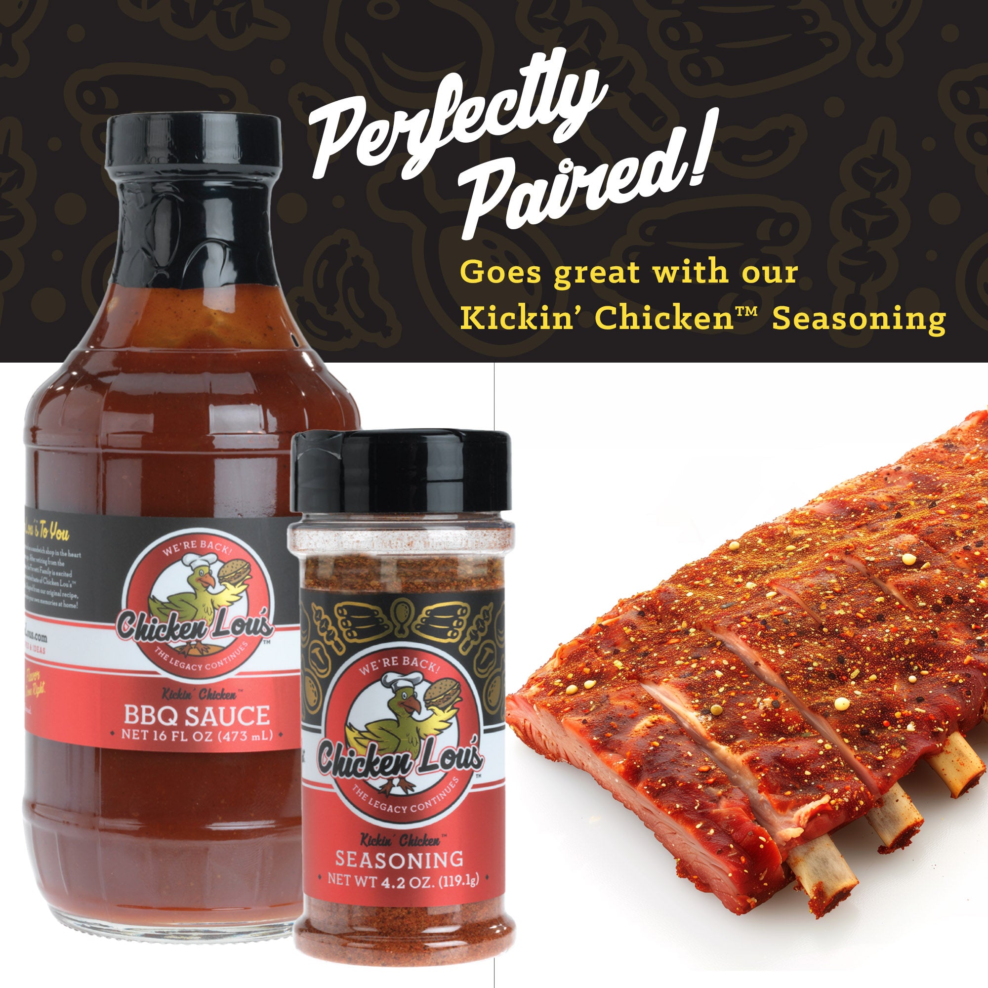 Our BBQ sauce is the perfect dip for your French fries, onion rings, and chicken tenders! Smother your burgers or sandwiches with it or add it to your favorite mac and cheese recipe! A great marinade for chicken, beef, pork ribs or turkey that caramelizes your meat beautifully! Amp up your pulled pork, pulled chicken, pulled brisket or BBQ game to make an instant favorite among your family! Pairs perfectly with our Kickin’ Chicken™ Seasoning for a flavor profile that is simply unforgettable!