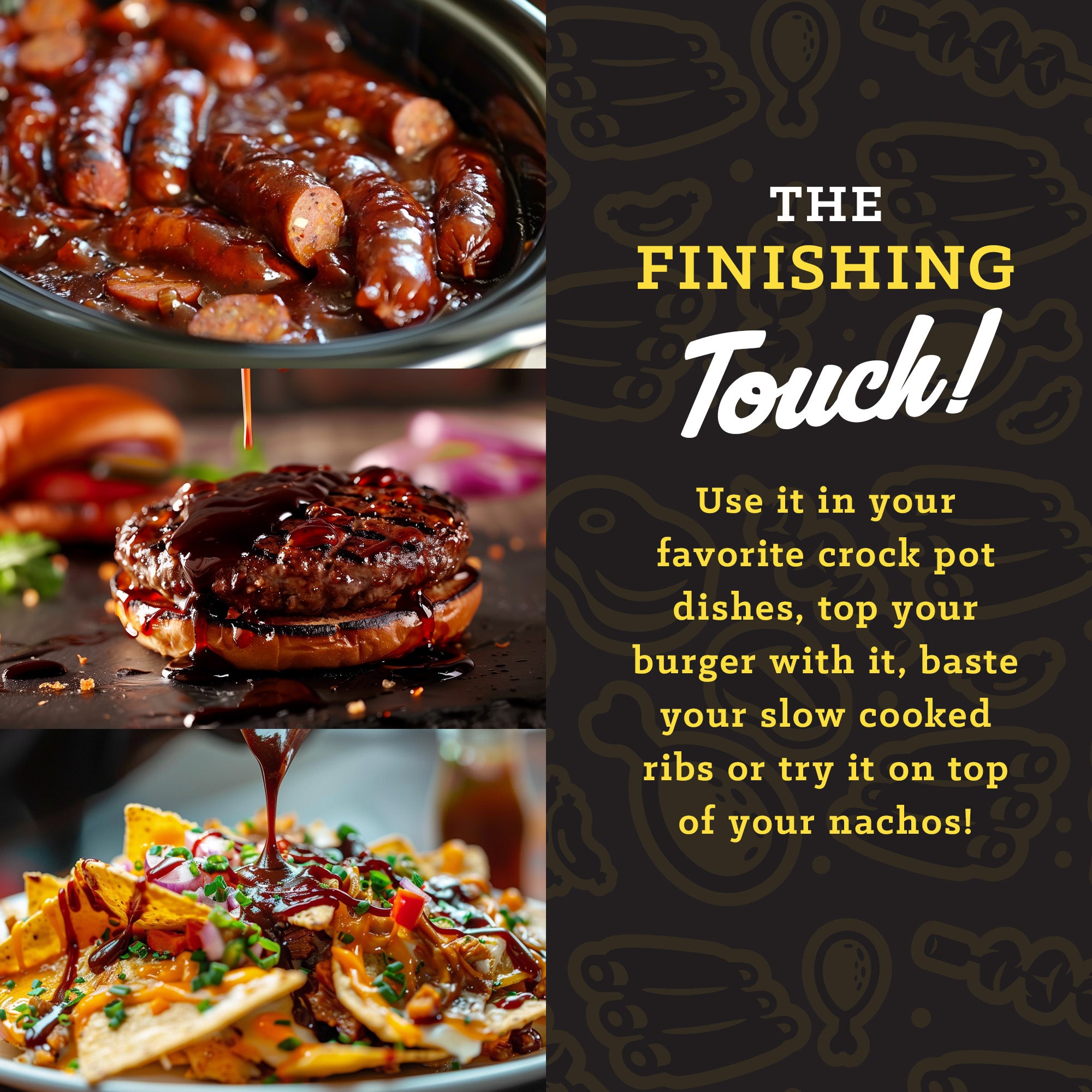 Brown sugar, molasses, ancho chili powder, tomato paste, and caramelized onions are blended together seamlessly for a mouthwatering culinary creation. Sweet and tangy with a slight heat, this BBQ sauce has a craveable blend of flavors that will keep you coming back for more!