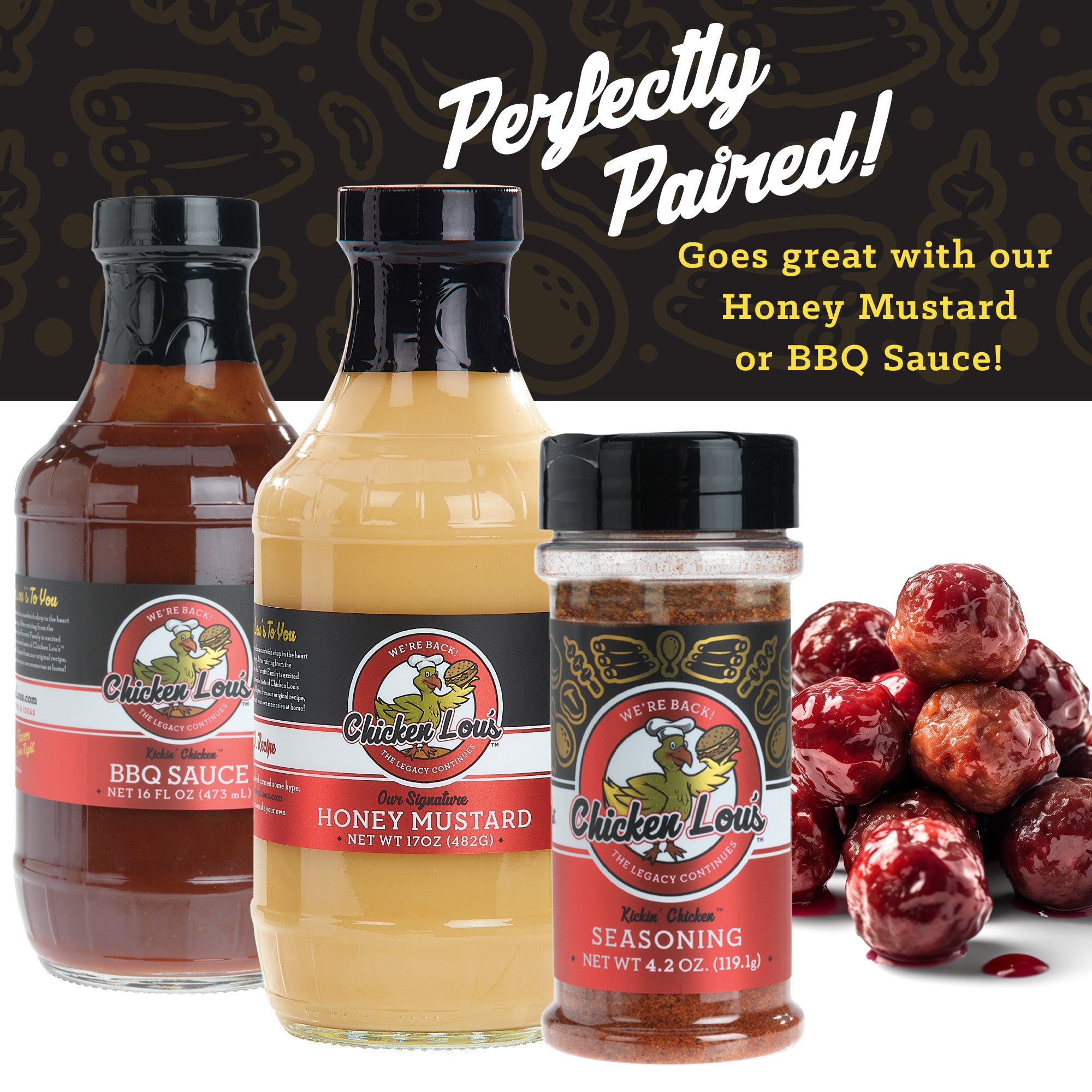 Our Kickin’ Chicken™ Seasoning is a great rub for ribs, chicken, beef or pork before you grill, roast or smoke! It adds a nice flavor to your chili, stew, veggies or taco meat! Pairs perfectly with our Kickin’ Chicken™ BBQ Sauce!